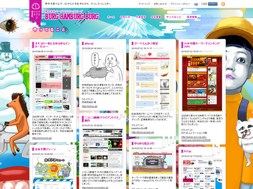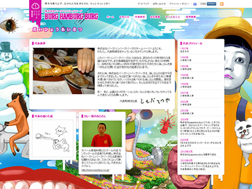 もう一目見てもらえればわかるかと思いますが、変テコなコンテンツ制作を得意とする株式会社バーグハンバーグバーグのコーポレートサイト。奇抜!斬新!おもしろ!天才!粋!カッコイイ!どんな言葉が適しているのでしょうか・・・。