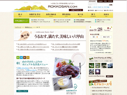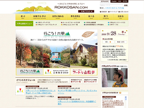大阪、神戸からおよそ1時間のところにある六甲山のポータルサイト。豊かな自然、アスレチック、アウトドア、景色を楽しめる六甲山を紹介しています。パッと見では六甲山のサイトなのかよくわかりませんが、自然溢れる六甲山の雰囲気が出ているサイトデザインになっています。