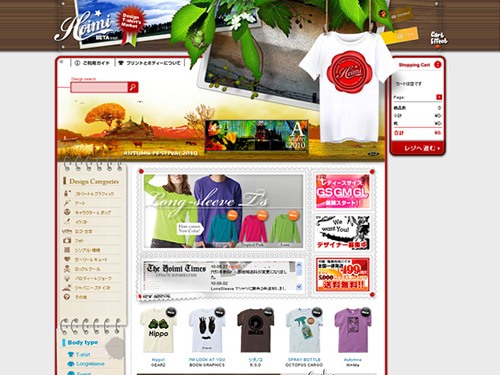 Hoimi(ホイミ)さんが運営する、ハイレベルなデザイナー達が集うデザインTシャツをはじめとしたアパレル通販サイト。サイトデザインが派手で、独創的で、あまりないデザインで目立ちますね。インパクトというところでは、かなり効果がありそうです。