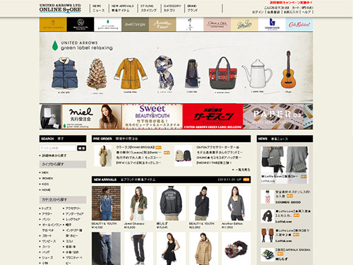 ご存知、UNITED ARROWS(ユナイテッドアローズ)直営の公式通販サイト。UNITED ARROWSをはじめ、BEAUTY & YOUTH、green label relaxing、Another Edition、時しらずなど、UNITED ARROWSの人気ブランドの商品を一挙に紹介しているサイトです。公式通販サイトなので、もちろん商品を購入することもできます。