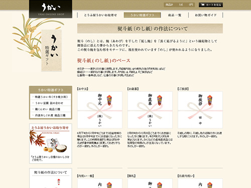 うかい特選ギフトでもプレゼント用の包装や熨斗紙などを選ぶことができます。こういう心遣いがウェブへの意識の高さや、取り扱う商品への自信が感じられますよね。