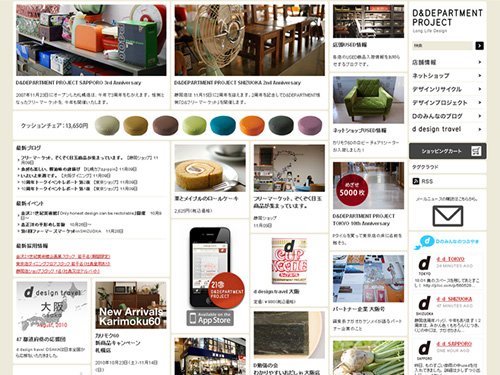 ロングライフな商品を取り扱うデザインセレクトショップのD&DEPARTMENT PROJECTさんのオンラインショップサイトです。ロングライフデザインについて考え、実験、実践するさまざまなデザイン活動をおこなっているようです。