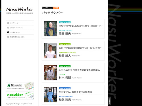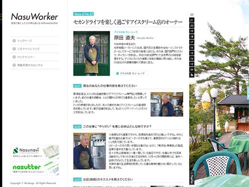 この「Nasuworker(ナスワーカー)は、那須塩原で働き、生活する人たちの生の声をお届けするWEBマガジンです。那須地域の様々なジャンルのお店・施設で働く人たちに、仕事内容や職場の紹介等の質問に答えてもらい、働く側の人間が語る自身の職場のオススメや地元那須の魅力等を配信することを目的としています。