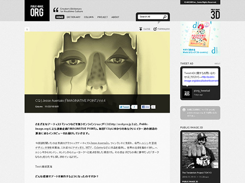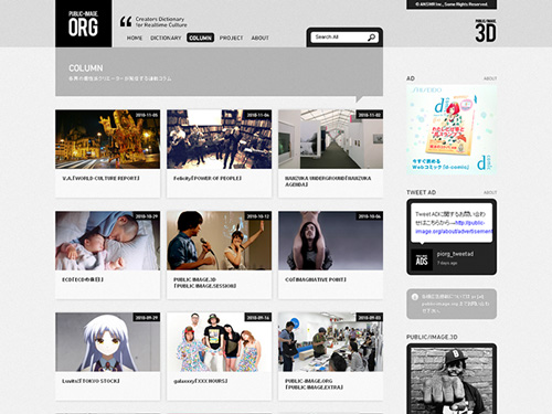 「PUBLIC-IMAGE.ORG(パブリックイメージオルグ)」は、目まぐるしく変化を続けるクリエイティブシーンの動向を伝えるべく、2007 年 4 月にクリエイティブスタジオ「ANSWR」によって創刊されたWebマガジン。Webマガジンなので、読みものがタップリです。