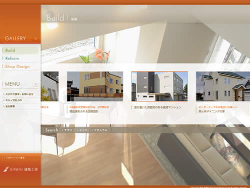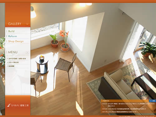札幌を中心に住宅リフォーム・マンションリフォーム、新築、注文住宅、店舗、ガーデニングの設計&デザイン&施工管理を行っている「SAWAI建築工房」さんのサイト。フルフラッシュで制作されたサイトです。久しぶりにストレスなくスムーズで、動き方が気持ち良いフルフラッシュのサイトを見ました。