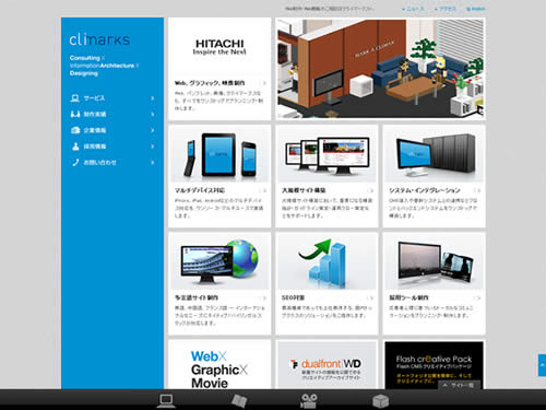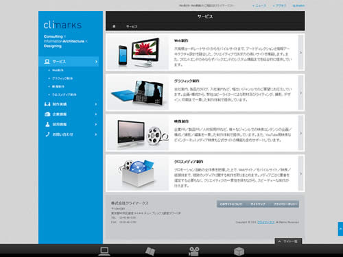 Web制作を行っている「クライマークス」さんのサイト。ブランディング・グローバル・リクルーティング領域を事業の中心に、Webサイト・モバイル・スマートフォンサイト制作、システム構築、グラフィック制作、映像制作のプロフェッショナル集団として、最適なソリューションを提供しているそうです。