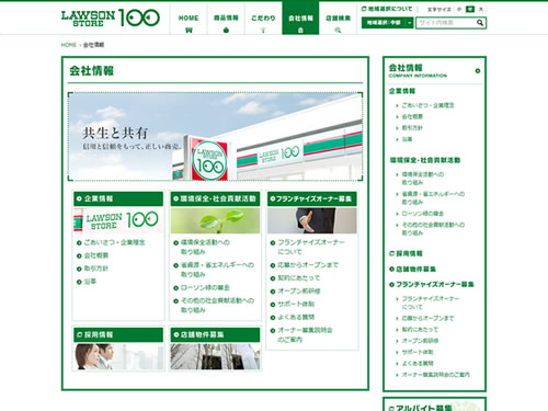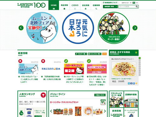 実店舗の印象を崩すことのない緑色を基調としたサイトデザインで、どんな方にも使っていただくコンビニのサイトということで、サイト自体もバリアフリーの雰囲気がにじみ出ています。