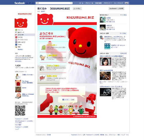 SEO対策やサイト制作時に必要となってきたFacebookのファンページ。着ぐるみもこんな↑感じで力を入れています。