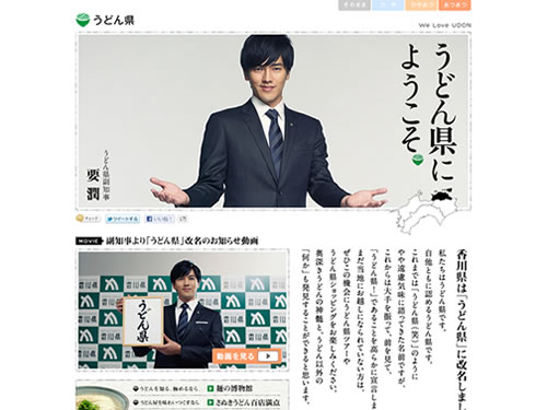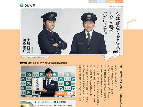 うどん県にようこそ。香川県は「うどん県」に改名しました。という香川県の地域活性化させるための、香川の観光情報ポータルサイトのキャンペーンコンテンツです。
