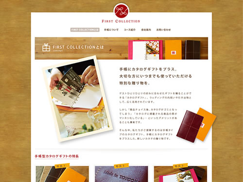 FIRST COLLECTIONは、手帳タイプの「カタログギフト」を皆様に提供しています。商品チョイス後は高品質の手帳としてお使い頂ける、新しいカタチの贈り物だそうです。