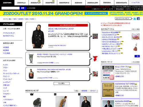 ファッションに興味のある方ならご存知「ZOZOTOWN」。そのZOZOTOWNがYahoo!JAPANと提携することにより、ホームページが2010年11月24日にリニューアルしました。今までのような「街」を意識したデザインから「人」を意識したデザインに一新です。やっぱりカッコイイですね。
