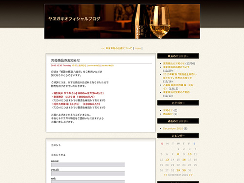 細かいことを言うと、トップで使用されているカッコイイ日本酒の写真素材。グラス部分に光るような十字がちょっと安っぽいかなぁ・・・と思ってしまいますので、それは必要ないかなと思います。後は八重垣で使用されているゴールドのグラデーションなど良い味を出していますね。