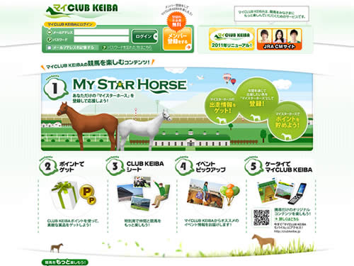 ユーザーの方にもっと競馬を楽しんでもらいたいということで制作された「マイCLUB KEIBA」のサイト。以前から色々と親しみいやすいテレビコマーシャルで知られているCLUB KEIBAですが、サイトでもその目的に特化したサイト作りになっています。