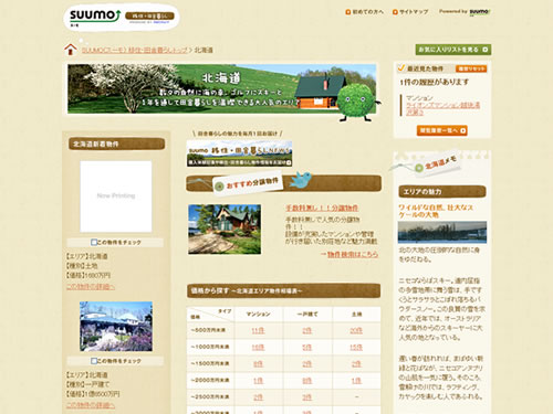 田舎暮らし、移住、定住の住宅総合情報サイト「SUUMO(スーモ)移住・別田舎暮らし」のサイト。田舎のエリア別物件検索、田舎暮らし物件の購入ガイド、購入体験者など情報が満載です。貴方の田舎暮らし、移住・定住ライフ、不動産会社探しをサポートしてくれるそうです。